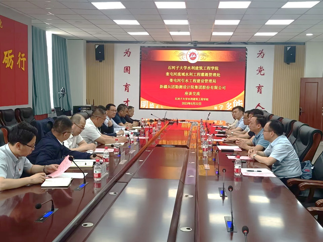 夏明海处长介绍了奎屯河流域水利工程灌溉管理处基本情况。张记忠局长介绍了奎屯河引水工程建设管理局基本情况及来访交流目的。周宝华副总经理详细介绍了新疆兵团勘测设计院集团股份有限公司产学研现状。与会专家对学院发展给予了高度评价,并详细提出产学研合作交流合作意向,提出进一步在科技合作和人才培养等方面进行深入合作,实现互利共赢。